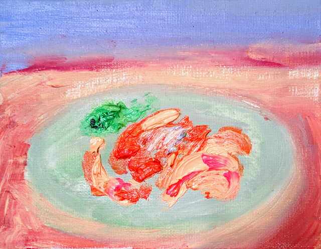 2023年の個展展「この未来は、あのとき選べなかったかもしれない。」(具象絵画+ナラティヴ+絵日記)では、あおいは自分の力不足を痛感したという。今回の展示はそれへのリベンジとして計画された。単に傷ついた「内面の吐露」ではなく、「治癒のため」でもなく、これらの絵は、社会、家族、カルト、エロス、ジェンダー、政治、思想、制度、人間関係――あおいの「身体」が通ってきたすべての環境下での、複雑 で微妙な蓄積からの表象だという。今回も、具象的なもの、ことを抽象的な筆致で仕上げている。